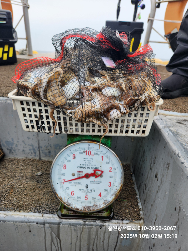 | 제목 : 10/2 홍원항 서도호 ㅡ 7.1키로 쭈갑 망태기 조황 | ||
